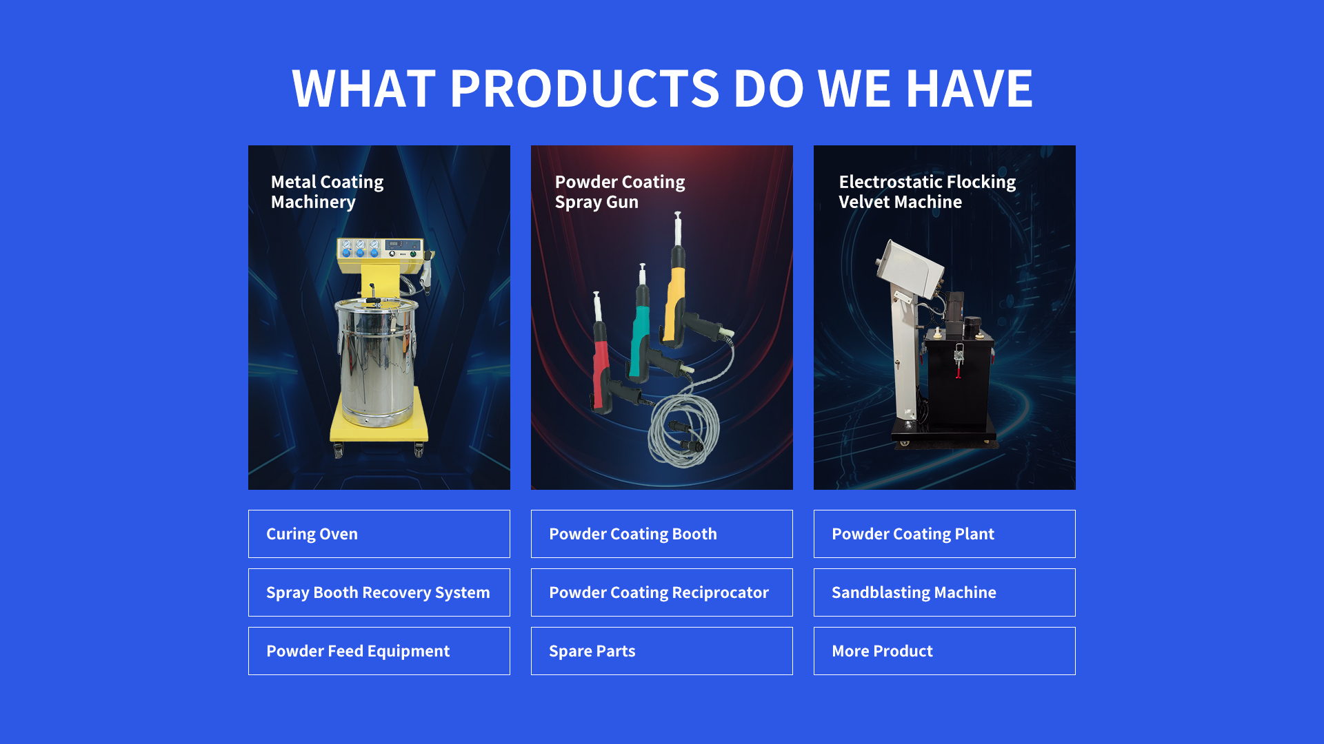 Electrostatic Powder Coating Machines use high-voltage electrostatic charges (30–100 kV) to bond powder particles to grounded metal surfaces. Core components include a high-voltage generator spray gun powder hopper and recovery system.
